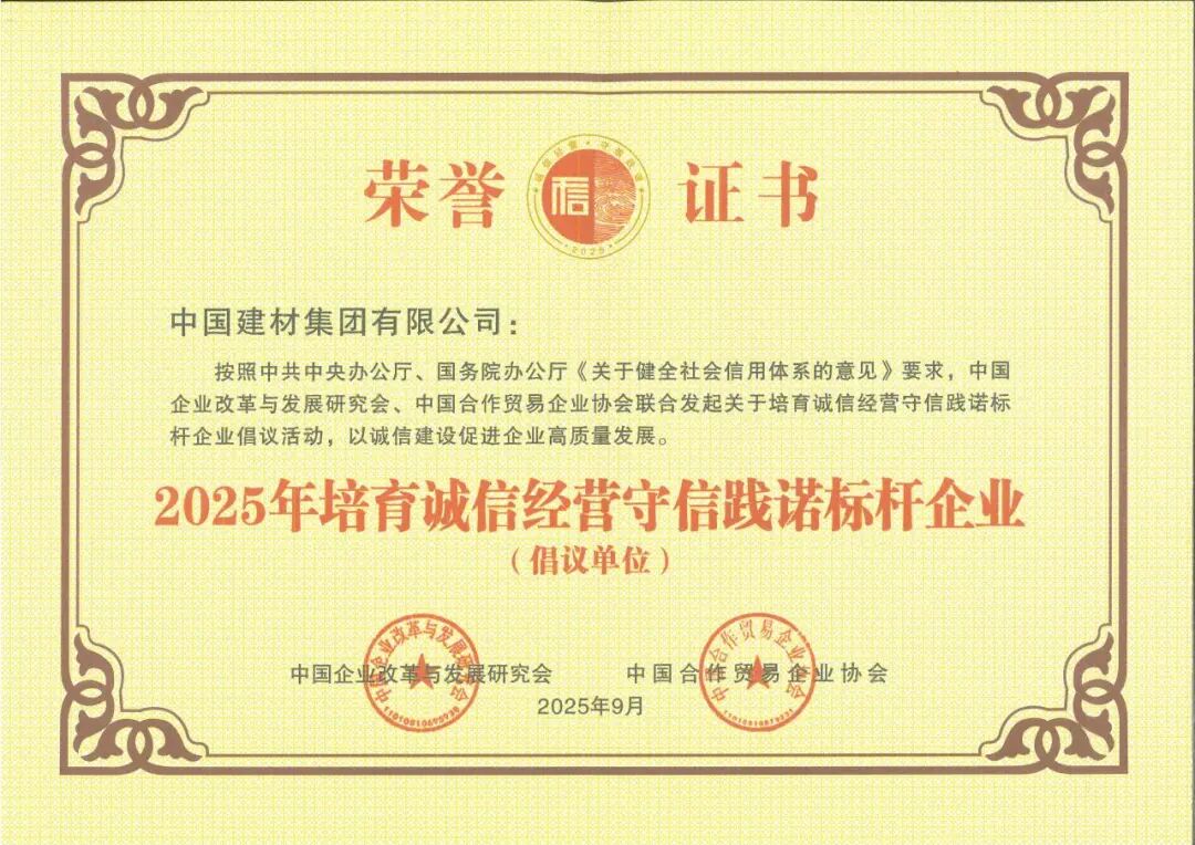 中國(guó)建材集團(tuán)入選2025年培育誠(chéng)信經(jīng)營(yíng)守信踐諾標(biāo)桿企業(yè)倡議單位