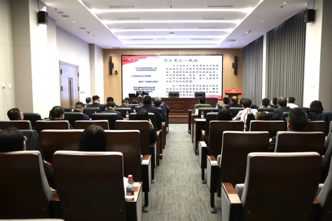 座談交流環(huán)節(jié)結束后,會議進入專題培訓階段。天津市社會主義學院教研部副主任、教授李雯圍繞《中國共產黨統一戰(zhàn)線工作條例》等政策法規(guī)開展授課。她以“政策內涵+實踐案例”的方式,解析了“統戰(zhàn)工作與生產經營融合”的實操路徑。授課內容精準務實,幫助參會人員進一步厘清了統戰(zhàn)工作的方法思路。